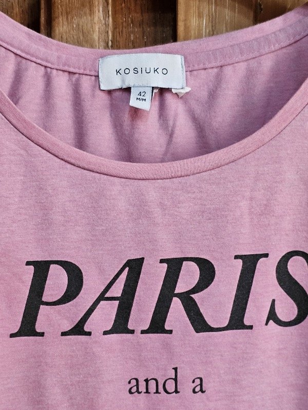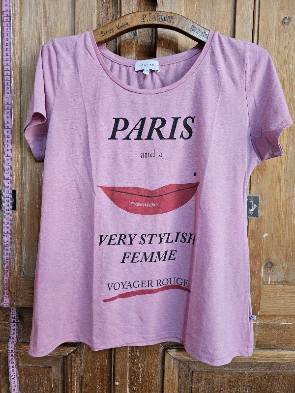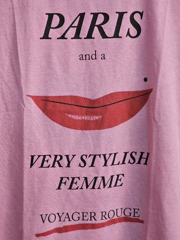 Remera rosa con estampa.